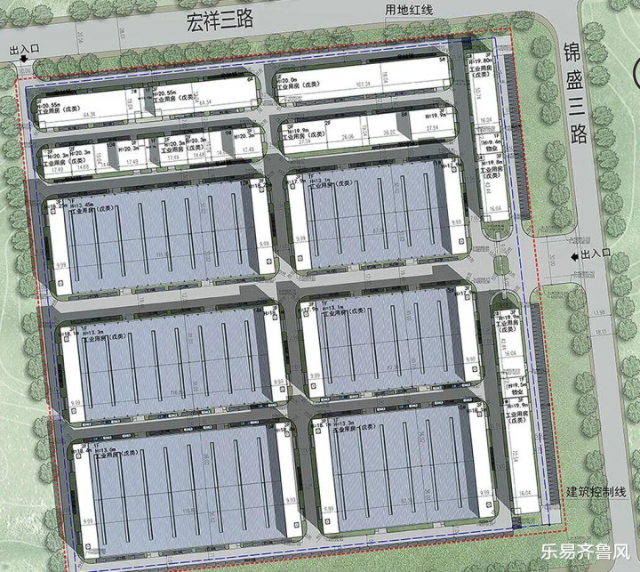 项目规划用地性质为一类工业用地,用地面积97512㎡,总建筑面积97821.28㎡(均为地上),容积率1.62,绿地率7.12%,停车位393个,建筑密度61.48%。规划建设16栋多层厂房。